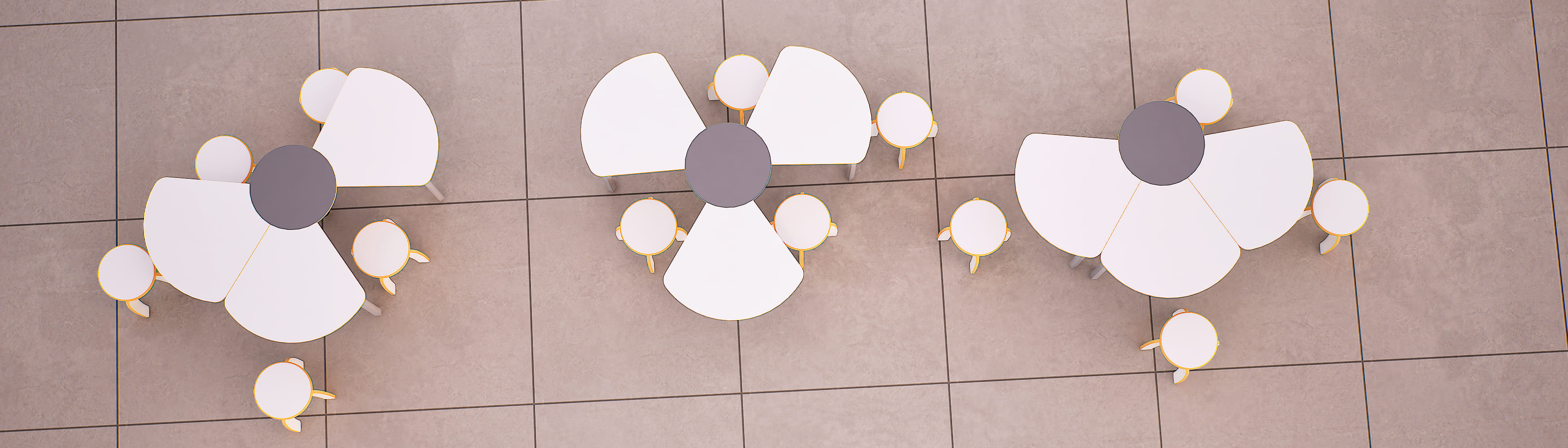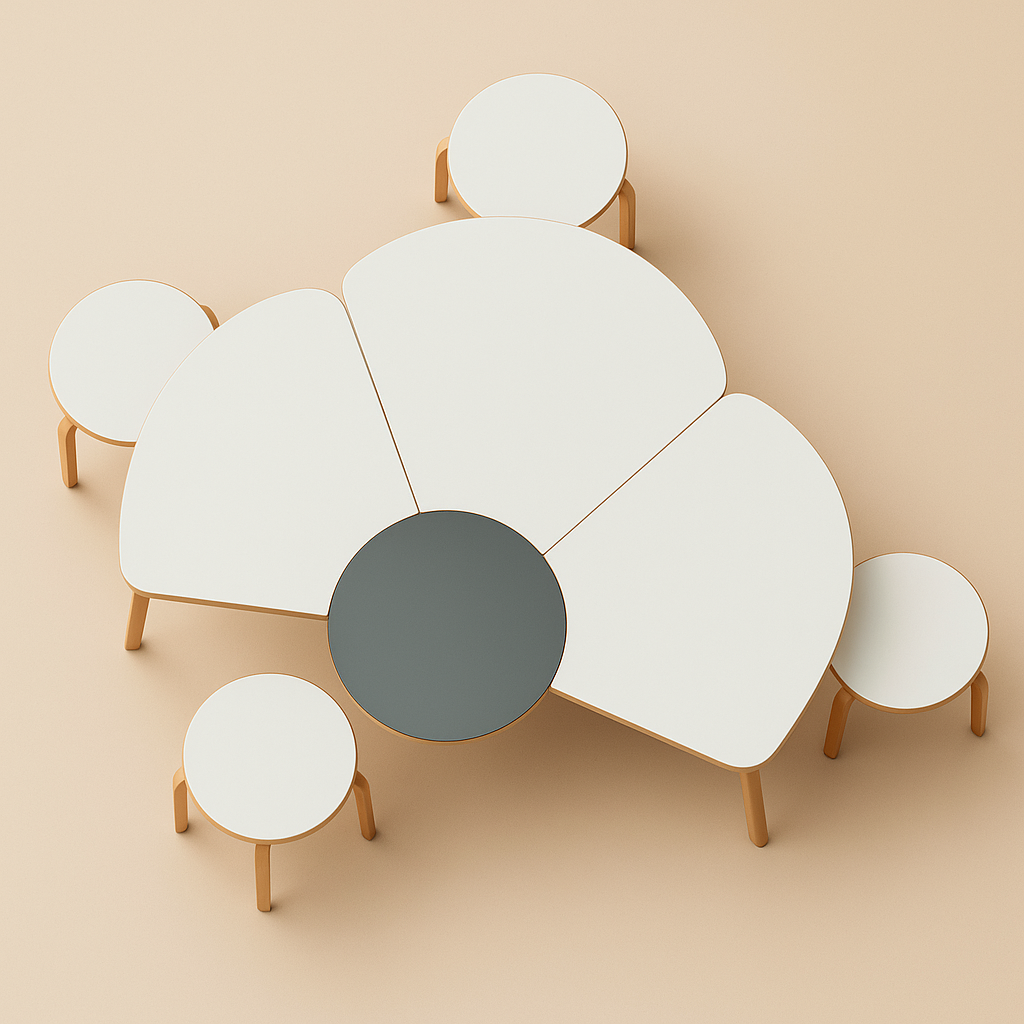 Meubels passen zich aan de kinderen aan. Een stoel die je zelf kunt optillen of een tafel die je kunt verschuiven, maakt dat mogelijk. Vandaag werk je alleen, morgen met drie kinderen aan één tafel. Licht, flexibel en mobiel meubilair zorgt ervoor dat iedereen kan werken zoals hij of zij dat wil. Onze bloemtafel is hier een perfect voorbeeld van, maar daarover volgt binnenkort meer.