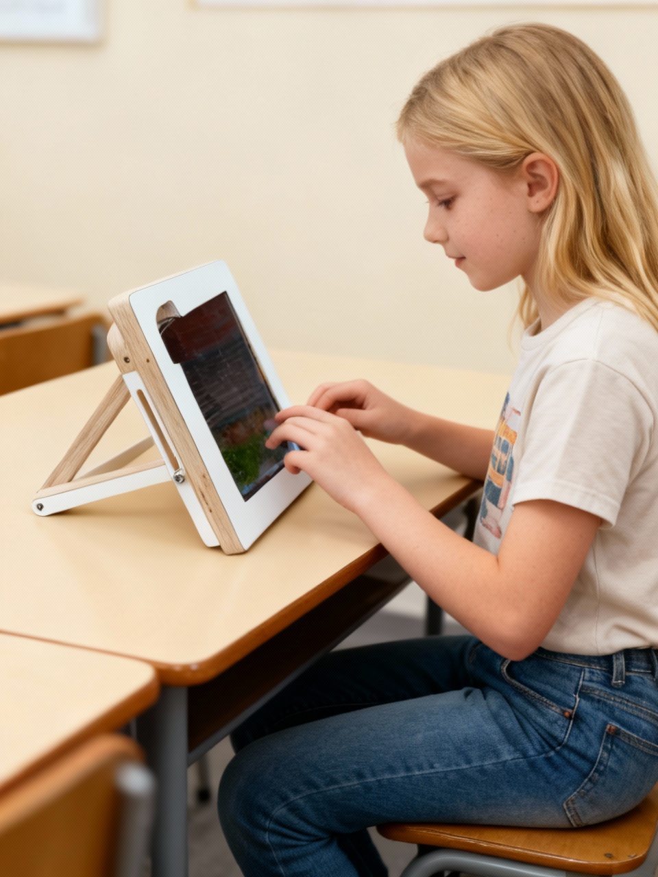 Deze Ipad houder is gemaakt voor de zorg, maar is nu ook bruikbaar voor het onderwijs. De ipadhouder is een houder die eenvoudig in gebruik is, in- en uitklapbaar, dag en nacht beschikbaar is zonder storingen én waarbij het snoertje niet losgekoppeld kan worden.
